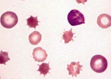 It is characteristic for NA that deformed erythrocytes with thorny protrusions are found in the patients´ blood. Although not detectable in every single case, these cells are the origin of the term neuroacanthocytosis, denoting the association of neurological findings and acanthocytes (“akantha”: Greek for thorn).
